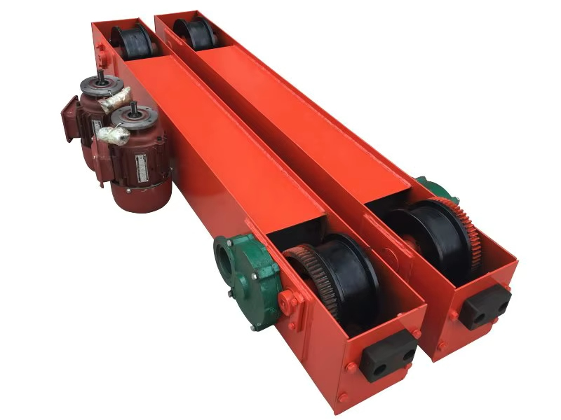 The bridge is composed of main beam and end beam, which is divided into single main beam bridge and double beam bridge. The main beam is rigidly connected with the end beam, and wheels are installed at both ends of the end beam to support the bridge to run on the elevated rail. A track is welded on the main beam for the operation of the lifting trolley.